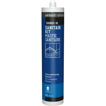 De Handson sanitairkit antraciet 290 ml gebruik je om kieren en voegen in vochtige ruimtes netjes af te dichten. Deze sanitairkit is blijvend elastisch, waardoor de aansluiting goed meebeweegt wanneer de ondergrond licht werkt. De kit is zuurvrij en vormt geen vlekken op de ondergrond. Zo maak je een strakke afwerking in bijvoorbeeld de badkamer of keuken.