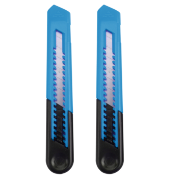 De set afbreekmessen bestaat uit 2 stuks afbreekmessen van 18mm. De messen zijn gemaakt van sterk kunststof. Hierdoor zijn de messen stevig en multifunctioneel te gebruiken, bijvoorbeeld als stanleymes. Beide afbreekmessen zijn voorzien van een afneembare eindkap. Hiermee breekt u het versleten gedeelte van de mesjes makkelijk af. De 2 afbreekmessen van de set hebben een mesbreedte van 18mm. De messen kunnen op elke gewenste lengte worden vastgezet. Moet u de mesjes vervangen? In Handson?s assortiment vindt u bijbehorende vervangende reservemesjes.