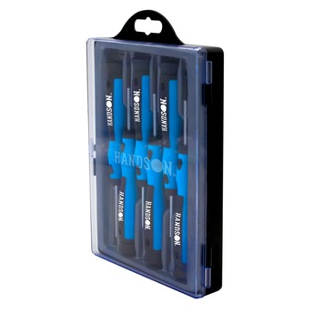 De 6-delige Handson-schroevendraaierset TX bestaat uit 6 schroevendraaiers, gemaakt van chroom-molybdeenstaal. De 6 schroevendraaiers zijn geschikt voor Torx-kopschroeven van 3,5mm en kleiner, namelijk Torx-schroeven met maat TX5, TX6, TX8, TX9 en TX10. De 6-delige set met schroevendraaiers is dankzij de afmetingen van de TX-schroevendraaiers ideaal voor precisiewerk, zoals het schroeven van schroeven met kleine maten. Bovendien zijn de precisieschroevendraaiers voorzien van een draaiende kop die het schroeven makkelijker maakt. Bekijk Handson?s assortiment wanneer u op zoek bent naar andere schroevendraaiersets.