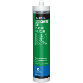 Handson siliconenkit Transparant 290 ml is een veelzijdige kit die uithardt tot een duurzaam elastisch rubber. De kit is omwille van zijn neutrale zuurvrije eigenschappen geschikt is voor kunststof en gevoelige materialen of ondergronden. De siliconenkit is niet overschilderbaar.