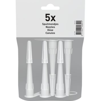 Handson spuitmondjes 5 stuks is een set met 5 losse spuitmondjes ten behoeve van Handson kokers. Onmisbaar bij het aanbrengen van siliconen.