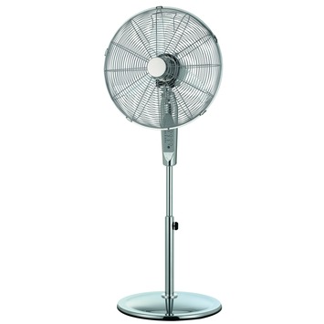 De Handson statiefventilator chroom 40 centimeter is ideaal voor de warme dagen. Met de afstandsbediening kan de ventilator gemakkelijk bediend worden. De statiefventilator is voorzien van drie kunststof ventilatorbladen in een veilige metalen behuizing met een doorsnede van 40 centimeter. De ventilator kan naar keuze op één van de drie snelheden worden gezet. De blaasrichting kan worden vastgezet, maar er is ook een mogelijkheid om een groter deel van de ruimte te verkoelen door de zwenkfunctie aan te zetten. De ventilator is in hoogte verstelbaar van 106 tot 120 centimeter. De ventilator heeft een snoerlengte van 180 centimeter.