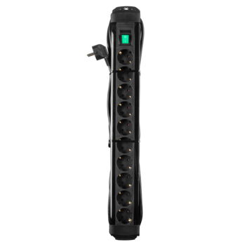De Handson stekkerdoos 10-voudig met schakelaar zwart 3 m geeft je in één keer tien extra stopcontacten. Zo sluit je moeiteloos je computer, printer, lampen en opladers tegelijk aan zonder dat alles door elkaar ligt. De stopcontacten staan in een hoek van 45 graden zodat brede stekkers elkaar niet hinderen. Met de kabel van drie meter bereik je makkelijk een verder gelegen contactpunt en blijft je werkplek overzichtelijk.