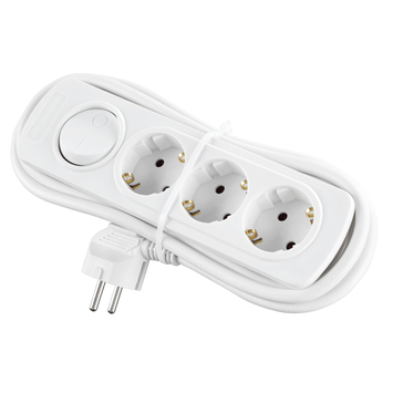 Op deze Handson Stekkerdoos 3-voudig Wit 1,5 Meter met 3 stopcontacten sluit je maximaal 3 elektronische apparaten tegelijkertijd aan, zodat je in een handomdraai het aantal stopcontacten in huis of op kantoor aanzienlijk vergroot. De witte stekkerdoos gebruik je onder meer om apparatuur zoals printers of computers op kantoor aan te sluiten, maar bijvoorbeeld ook om huishoudelijke apparatuur in de keuken of bijkeuken van stroom te voorzien. De contactdozen op de stekkerdoos zijn geschikt voor maximaal 230V. Met behulp van de schakelaar schakel je de contactdozen zelf aan of uit.