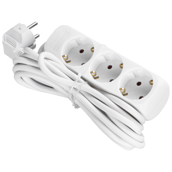 Op deze Handson stekkerdoos 3-voudig wit 3 meter met 3 stopcontacten sluit je maximaal 3 elektronische apparaten tegelijkertijd aan, zodat je in een handomdraai het aantal stopcontacten in huis of op kantoor aanzienlijk vergroot. De witte stekkerdoos gebruik je onder meer om apparatuur zoals printers of computers op kantoor aan te sluiten, maar bijvoorbeeld ook om huishoudelijke apparatuur in de keuken of bijkeuken van stroom te voorzien. De contactdozen op de stekkerdoos zijn geschikt voor maximaal 230V.