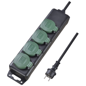 De Handson Stekkerdoos 4-voudig RA Zwart/ Groen 3 Meter Waterdicht is geschikt voor het aansluiten van meerdere elektrische apparaten op één contactdoos. Deze zwarte stekkerdoos heeft 4 spatwaterdichte (beschermingsklasse IP44) geaarde stopcontacten met groene deksels en een 3 meter lang snoer. Met een belastbaar vermogen tot 3500 watt kun je meerdere elektrische apparaten op deze stekkerdoos aansluiten. De stekkerdoos is geschikt voor buitengebruik.