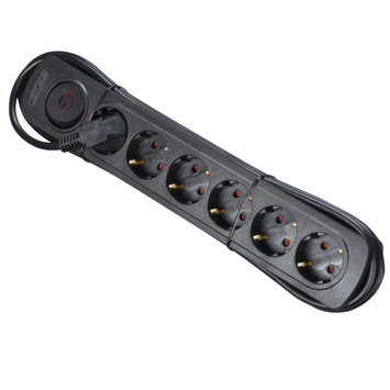 Op deze Handson Stekkerdoos 6-voudig RA Zwart 2,5 Meter bevinden zich 6 contactdozen waarop je maximaal 6 elektronische apparaten tegelijkertijd aansluit. Zo vergroot je het aantal stopcontacten in huis of op kantoor in een handomdraai. De zwarte stekkerdoos gebruik je onder meer om printers of computers op kantoor aan te sluiten, maar bijvoorbeeld ook om huishoudelijke apparatuur in de keuken of bijkeuken van stroom te voorzien. Met behulp van de schakelaar schakel je de contactdozen zelf aan of uit.
