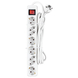 Op deze Handson Stekkerdoos 8-voudig RA Wit 2,5 Meter bevinden zich 8 contactdozen, 4 geaarde en 4 euro stopcontacten, waarop je maximaal 8 elektronische apparaten tegelijkertijd aansluit. Zo vergroot je het aantal stopcontacten in huis of op kantoor in een handomdraai. De witte stekkerdoos gebruik je onder meer om printers of computers op kantoor aan te sluiten, maar bijvoorbeeld ook om huishoudelijke apparatuur in de keuken of bijkeuken van stroom te voorzien. Met behulp van de schakelaar schakel je de contactdozen zelf aan of uit.
