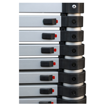 Ben je op zoek naar een gebruiksvriendelijke ladder die je voor werkzaamheden binnen of buiten in je tuin gebruikt? Dan kies je voor de Handson Telescopische ladder 11 treden. Door de flexibel instelbare werkhoogte van de ladder en het stabiele anti-slip treden, is dit een prettige ladder om mee te werken. Dankzij de unieke centrale bediening is deze ladder gemakkelijk te ontgrendelen en schuif je hem automatisch in. Zodra je de ladder opent, zorgt het soft-closesysteem ervoor dat de ladder geleidelijk schuift en worden je vingers goed beschermd. Door het telescopische mechanisme is deze ladder zeer compact op te bergen (48 cm), maar is de uitgeschoven lengte toch 331 cm. Je kunt de ladder belasten met een gewicht tot 150 kg.