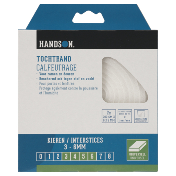 Wil je de kieren en spleten in je deuren en ramen efficiënt dichten? Dicht ze dan af met Handson tochtband PU-schuim 6x9 mm 3 meter wit 2 stuks. Dit 3 meter lange, witte tochtband is gemaakt van polyurethaanschuim, beter bekend als PU-schuim, een lichtgewicht materiaal en kenmerkend vanwege zijn vochtwerende en isolerende eigenschappen. De tochtband is geschikt voor het dichtmaken van kieren vanaf 3mm tot en met 6mm. Dankzij de zelfklevende strip plak je de tochtband makkelijk en snel zelf. Kortom: houd kou, stof en vocht buiten met deze tochtband van Handson.
