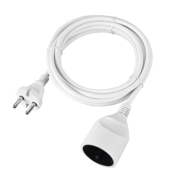 Mocht je snoer tekort komen, dan zorgt dit Handson Verlengsnoer Zonder Aarde Wit 3 Meter ervoor dat afstanden overbrugd kunnen worden. De witte verlengkabel met een lengte van 3 meter is binnen in huis, op kantoor of in een bedrijfspand te gebruiken. Je sluit het snoer op ieder elektrisch apparaat aan dankzij de eurostekker.