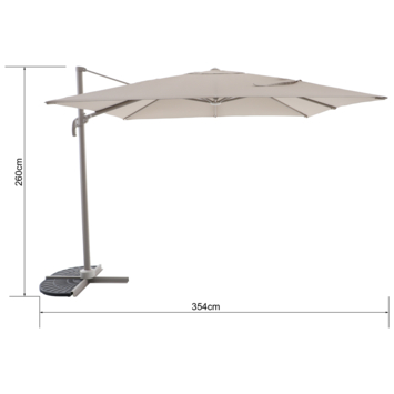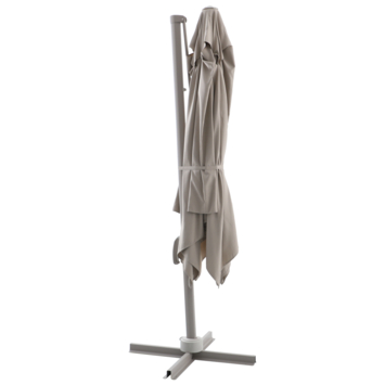 Met een doekmaat van 300 x 300 cm dek je een groot zitgedeelte af. De parasol is ongeveer 3 meter hoog. Daardoor plaats je hem makkelijk boven een eethoek of zithoek zonder dat het doek snel in de weg hangt.