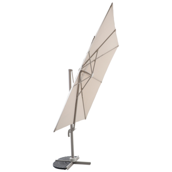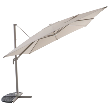 De Handson zweefparasol Ibiza beige 300 x 300 cm gebruik je om schaduw te maken op je terras of in de tuin. Doordat het een zweefparasol is, staat de paal aan de zijkant. Zo houd je meer ruimte vrij onder het doek voor je tuintafel of loungeset.