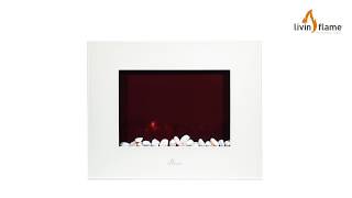Livin' flame hanghaard Kingston is een rechte, strakke, witte hanghaard voorzien van LED vlambeeld en twee warmtestanden (1000 en 2000 watt) De haard wordt geleverd incl. afstandsbediening, houtblokken en kiezelstenen. U kunt zelf kiezen wat het beste bij u past. De houtblokken geven de haard een meer klassieke tint, terwijl de kiezelstenen de haard heel modern maken. De Kingston is eenvoudig aan de wand te monteren door de meegeleverde bevestigingsmaterialen. De afmetingen van deze haard zijn 48 cm breed x41 cm hoog x14 cm diep.