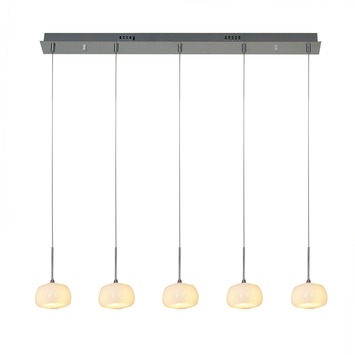 De Hanglamp Miley chroom/wit is een sfeervolle hanglamp die bestaat uit vijf spotjes. De lamp beschikt over een maximaal wattage van 20W, zodat een warm en prettig licht wordt afgegeven. De lichtbron van deze lamp is halogeen en is daarnaast ook energiebesparend. Met deze Hanglamp Miley chroom/wit wordt uw huis sfeervol verlicht. De lamp is wit van kleur en gemaakt van metaal, wat zorgt voor een mooi en strak design. Oftewel, sfeervolle en opvallende verlichting in uw huis met deze Hanglamp Miley.