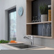De Hansgrohe keukenkraan Focus M43 met hendel en uittrekbare sproeikop Chroom 150 is een praktische keukenkraan met uittrekbare uitloop. Deze zorgt buiten de 140° draaibare uitloop voor nóg meer bewegingsvrijheid. De hoge uitloop op 15 cm wordt op zijn plek gehouden door een MagFit magnetische douchehouder, dus de uitloop kan zonder beperkingen uitgetrokken en weer teruggezet worden. Op deze manier kun je niet alleen de afwas of je handen afspoelen, maar vormt ook het vullen van een hoge pan of vaas geen uitdaging meer. Het verbruik van deze kraan is maximaal 10 liter per minuut. Voor een langere levensduur zorgen de QuickClean noppen op de perlator. Door hier regelmatig met je duim overheen te wrijven, krijgen kalkresten en vuil geen kans om de kraan te verstoppen. Deze keukenkraan wordt geleverd met flexibele aansluitslangen en een fixatiesetje, zodat je hem eenvoudig op je spoelbak kunt monteren. Hiervoor heb je wel een kraangat met een diameter van 35 milimeter nodig. Op de kraan heb je 5 jaar fabrieksgarantie en het Belgaqua keurmerk.