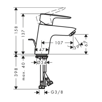 Hansgrohe Mysport M wastafelkraan eengreeps met waste
