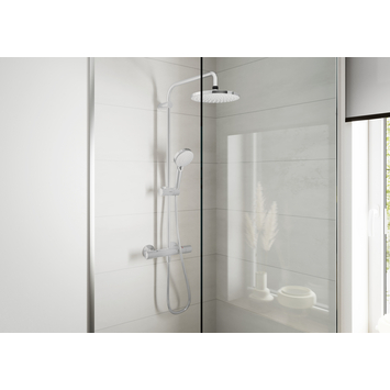 De thermostaatkraan zorgt ervoor dat je douchewater altijd op de juiste temperatuur blijft, zonder vervelende schommelingen. De handdouche heeft twee verschillende straalstanden, zodat je kunt kiezen tussen een krachtige of zachtere douche. Dankzij de anti-kalkfunctie blijft je douchekop mooi en makkelijk te onderhouden, en met de verstelbare handdouchehouder pas je de hoogte aan jouw voorkeur aan.