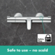 De Hansgrohe Thermostatische Badkraan MyFox Chroom 15 cm kenmerkt zich door zijn stijlvolle ontwerp en is daardoor een prachtige blikvanger in iedere badkamer. Dankzij de twee metalen handgrepen is de mengkraan eenvoudig en stabiel te bedienen en de watertemperatuur is gemakkelijk in te stellen. De thermostaat is zeer veilig dankzij de SafetyStop temperatuurbeveiliging op 40°C. De kans dat de gebruiker de temperatuurbegrenzing door de 40°C draait is met deze instelling kleiner, waardoor de kans op verbranding aan heet water minder groot wordt. Ook kan vooraf de maximale warm water temperatuur worden ingesteld met de Safetyfunctie en wordt de kraan niet heet aan de buitenkant. Extra veilig voor jong en oud! De kraan beschikt over een uitspoelbare vuilfilter waardoor hij optimaal beschermd blijft tegen vuil uit leidingen.