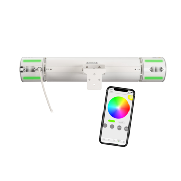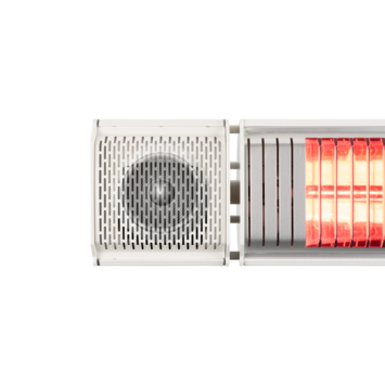 De Eurom Heat and Beat is een unieke 2000 Watt terrasstraler met ingebouwde speakers voor het streamen van muziek vanaf de Smartphone of tablet (Android / iOS). De Golden Amber lamp geeft zeer aangename warmte en weinig licht. Het maximale 2000 Watt vermogen is traploos te dimmen met behulp van de gratis te downloaden app. De ingebouwde speakers staan door middel van bluetooth in verbinding met de Smartphone of tablet en samen met de geïntegreerde LED colour lights aan de achterzijde van de terrasverwarmer zorgt de Heat and Beat voor een warme, sfeervolle ambiance.