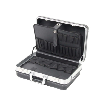 De gereedschapskoffer is gemaakt van ABS, een sterke kunststof, en heeft een frame van aluminium. Hierdoor blijft je gereedschap veilig in de koffer zitten als deze valt. De koffer is aan beide kanten uitgerust met een gereedschapsbord met insteekvakken en een documenten vak. Daarnaast heeft de gereedschapskoffer een ergonomisch handvat, sloten van hoge kwaliteit en schouderriem. Hierdoor is de koffer makkelijk mee te nemen en kan het gereedschap veilig worden bewaard zonder dat er andere mensen bij kunnen. Kortom, de HEPCO&BECKER Gereedschapskoffer Basic 460x180x310mm is een ideale gereedschapskoffer voor de elke klusser.