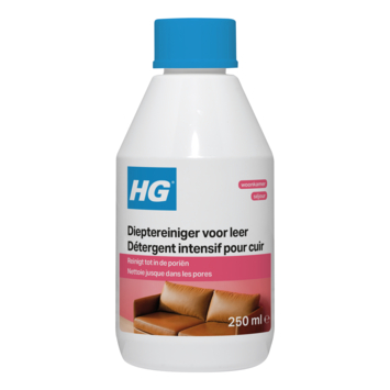 HG dieptereiniger voor leer is een milde reiniger op waterbasis die zeer geschikt is voor het reinigen van vol-aniline en gedekverfde leersoorten. HG dieptereiniger voor leer werkt tot in de porie van de leerfinish en legt een perfecte basis voor een behandeling met HG 4 in 1 voor leer. Doe een beetje HG dieptereiniger voor leer op een schone en zachte doek. Reinig het leer met ronddraaiende bewegingen zonder druk uit te oefenen. Laat de reiniger bij vlekken ongeveer 10 à 30 seconden inwerken en neem dan met een schone doek het losgeweekte vuil op. Laat het leer nu 30 minuten drogen. Voor optimale bescherming verdient het de voorkeur het leer te behandelen met HG 4 in 1 voor leer.