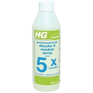 HG "douche & wasbak spray" is een milde en veilige iedere-dag-reiniger voor het snel verwijderen van lichte kalkaanslag, huidvetten en zeepresten op wasbakken, douchecabines, tegelwanden, badkameraccessoires en ander sanitair. HG "douche & wasbak spray" kan ook veilig gebruikt worden op marmer, travertin, ander kalkhoudend natuursteen en beton. De inhoud van de flacon is dusdanig geconcentreerd dat u er 5 x 500 ml HG "douche & wasbakspray" mee kunt maken.