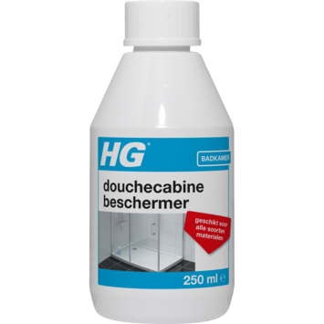 Dankzij HG douchecabine totaal beschermer worden alle materialen in en aan de douchecabine optimaal beschermt tegen kalkaanslag en vervuiling door zeepresten, badolie, huidvetten e.d. HG douchecabine beschermer maakt glaswanden, tegels, kranen etc. water en vuilafstotend. Er hoeft minder gereinigd te worden en bovendien zal reinigen veel eenvoudiger gaan. Reinig vooraf de te behandelen oppervlakken, zoals tegels, (plexi)glas, chroom, kunststof, aluminium of keramiek. Goed laten drogen en vervolgens een klein beetje HG douchecabine beschermer op een schone, droge doek doen en inwrijven met ronddraaiende bewegingen. Behandeling na ca 2 minuten herhalen en vervolgens het oppervlak met een zacht, droge doek uitpoetsen. Glasoppervlakken met een vochtige doek nawrijven.