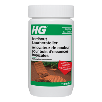 Hardhout bevat mineralen die, wanneer blootgesteld aan weersinvloeden verkleuren cq vergrijzen. HG teak en ander hardhout vernieuwer is speciaal ontwikkeld voor het herstellen, gedurende een heel buitenseizoen, van de natuurlijke kleur en uitstraling van uw hardhout. Bovendien voedt dit product het hardhout tot diep in de poriën waardoor het wordt beschermd tegen UV licht en uitdroging. HG teak en ander hardhout vernieuwer werkt snel en is eenvoudig aan te brengen op bijvoorbeeld hardhouten tuinmeubelen, vlonders, schuttingen, plantenbakken enzovoorts. Aanwezige vergrijzing vooraf verwijderen met HG hardhout ontgrijzer. Weerplekken verwijderen met HG weerplekken reiniger voor hout en rotan. Het hardhout goed naspoelen met schoon water en volledig laten drogen. HG teak en ander hardhout vernieuwer in de richting van de houtnerf aanbrengen met een kwast en in laten trekken. Te veel aan product binnen 10 minuten verwijderen met een droge niet pluizende doek. Na 24 uur kan het behandelde hardhout weer in gebruik genomen worden.