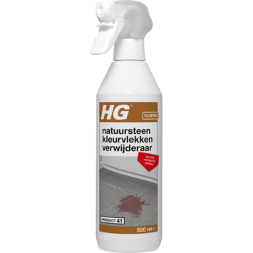 HG natuursteen kleurvlekken verwijderaar (HG product 41) verwijdert op eenvoudige wijze vlekken van koffie, thee, wijn, cola en andere gekleurde vlekken uit marmer en alle andere kalkhoudende natuursteenvloeren.