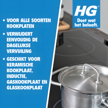 HG kookplaat alledag reiniger is een veilige, frisruikende alledag reiniger voor alle soorten keramische of inductie kookplaten. De reiniger verwijdert eenvoudig de dagelijkse vervuiling zoals vet en kalkaanslag en voorkomt daardoor sterke vervuiling die moeilijk te verwijderen is. Spray HG kookplaat alledag reiniger een paar keer op de kookplaat. Vervolgens afnemen met een droge keukendoek of keukenpapier tot het oppervlak weer droog en glanzend schoon is.