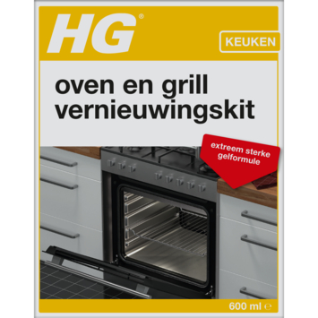 De HG oven & grill vernieuwingskit is een complete kit om de oven of grill maar ook bakplaten, (barbecue)roosters en planchas er weer als nieuw uit te laten zien. De extreem sterke inweekgel, die met de bijgeleverde speciale kwast wordt aangebracht, weekt zelfs de meest hardnekkig ingebrande aanbakresten effectief los. Deze unieke gelformule is speciaal ontwikkeld voor het lang kunnen inwerken (zonder in te drogen!) op verticale oppervlakken, waardoor ook hardnekkig ingebrande aanbakresten op de wanden van de oven of grill effectief losgeweekt worden.
