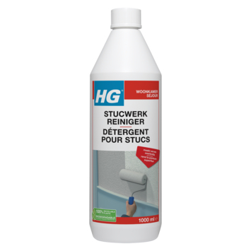 HG sierpleister reiniger maakt ongeverfd, vuil geworden sierpleister zeer snel en goed schoon. Het verwijdert moeiteloos vuilaanslag van vet, roet, nicotine enz.. Oververven wordt hierdoor overbodig. Ontruim het vertrek vooraf. Bedek alle niet te behandelen oppervlakken met afdekfolie. Maak het te reinigen oppervlak stofvrij met behulp van een zachte borstel. Giet HG sierpleister reiniger in een verfrollerbak. Rol hierin met een lakroller tot er schuim ontstaat. Het oppervlak dun en gelijkmatig inrollen. Eventueel overtollig schuim afnemen met een vochtige doek. Naspoelen of nabehandelen met water is niet nodig. Na circa 3 uur is het oppervlak droog.