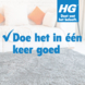 Door het belopen beschadigen bij een synthetisch tapijt de vezels waardoor ze gemakkelijk vuil vasthouden. Met HG tapijt- en bekledingreiniger (HG product 95) wordt het vuil verwijderd en wordt het oneffen vezeloppervlak opgevuld met een vuilafstotend laagje. Ook bij een wollen tapijt gebeurt op den duur iets dergelijks. Het natuurlijke wolvet verdwijnt namelijk langzaam maar zeker. HG tapijt- en bekledingreiniger vult dit weer aan met vuilafstotend materiaal. Behandel de vlekken vooraf met HG vlekkenspray. Daarna HG tapijt- en bekledingreiniger met een speciale machine insproeien en direct afzuigen of met een borstel inwrijven. Nadrogen met een badstof handdoek. Eén liter is goed voor 30 vierkante meter vloeroppervlak.