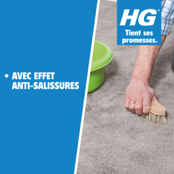 Door het belopen beschadigen bij een synthetisch tapijt de vezels waardoor ze gemakkelijk vuil vasthouden. Met HG tapijt- en bekledingreiniger (HG product 95) wordt het vuil verwijderd en wordt het oneffen vezeloppervlak opgevuld met een vuilafstotend laagje. Ook bij een wollen tapijt gebeurt op den duur iets dergelijks. Het natuurlijke wolvet verdwijnt namelijk langzaam maar zeker. HG tapijt- en bekledingreiniger vult dit weer aan met vuilafstotend materiaal. Behandel de vlekken vooraf met HG vlekkenspray. Daarna HG tapijt- en bekledingreiniger met een speciale machine insproeien en direkt afzuigen of met een borstel inwrijven. Nadrogen met een badstof handdoek. Eén liter is goed voor 30 vierkante meter vloeroppervlak.