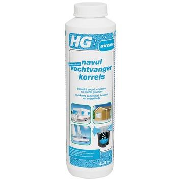 De HG vochtvanger brengt de relatieve luchtvochtigheid in vochtige ruimtes terug naar een acceptabel niveau. Hierdoor worden alle nadelige gevolgen van een te hoge luchtvochtigheid, zoals condens, een muffe geur, schimmel, vochtplekken, ongedierte en houtrot voorkomen. De HG vochtvanger werkt op basis van vochtaanzuigende korrels. Het systeem is geluidloos en werkt zonder stroom of batterijen. De toegepaste, ronde vocht-vang-korrels hebben een groter absorptie-oppervlak dan de vaak toegepaste schilfers en door de ronde vorm ontstaat er bovendien meer ruimte tussen de korrels waardoor er meer lucht (met vocht) langs de korrels kan stromen. Tezamen met de, op een zo hoog mogelijk luchtcontact vormgegeven korrelkorf, resulteert dit in een vochtvanger die sneller is, langer zijn werk doet en bovendien tot wel 1,5 keer meer vocht uit de lucht onttrekt dan vergelijkbare systemen. Afhankelijk van de relatieve luchtvochtigheid werkt een HG vochtvanger met 450 gram HG vochtvangerkorrels 2 à 3 maanden in een ruimte van ca. 40 m3. Door de handige schenkkan is het weggooien van het opgevangen vocht geen lastig karwei meer. Dus geen gemors en vlekken! Door de dubbelwandige HG korrelkorf kunnen de handen niet in aanraking komen met de korrels. U houdt dus altijd schone handen. De HG vochtvanger is uitstekend geschikt voor in de caravan, boot, schuur, kelder, kledingkast of andere ruimtes in huis. Voor het makkelijk navullen van de HG vochtvanger, maar ook andere systemen, zijn er HG vochtvanger navulkorrels neutraal en lavendel, in hersluitbare flacon.