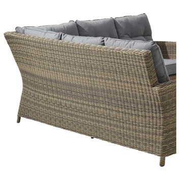 Wicker is materiaal van kunststof dat erg goed tegen weer kan. Wij adviseren het meubel te reinigen met natuurlijke zeep en een zachte borstel.