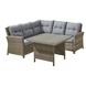 De hoekbank is 89 centimeter hoog, 198 centimeter breed en 197 centimeter diep. De eettafel is 68 centimeter hoog, 100 centimeter breed en 100 centimeter diep.