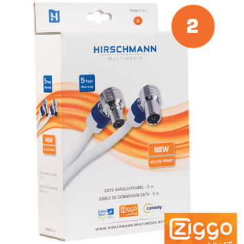 Fijn dat de haakse aansluitingen gedraaid kunnen worden. Het gecertificeerde kabel die geen storingen geeft bij Ziggo.