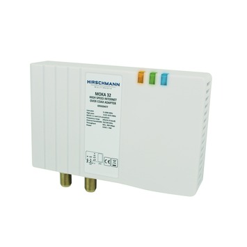 De Moka 32 is een Multimedia over Coax Adapter van Hirschmann. Door het installeren van twee Moka 32-units heeft u beschikking tot betrouwbaar internet tot 400 mbps en televisie, zonder dat u nieuwe databedrading hoeft te leggen. De Moka 32 stuurt het IP-signaal over de coaxkabel, zonder enig verlies van kwaliteit. De Moka 32 is aan te sluiten op het bestaande coax netwerk. De MOKA ondersteunt alle gangbare multimedia toepassingen zoals SmartTV, Blu-ray™player, Xbox®, Playstation®,Apple TV®,DVR, NAS (network storage), desktop, VoIP, Video on Demand, laptop, etc.. MOKA wordt toegepast op plekken waar er geen utp-bekabeling getrokken kan worden of waar dat te duur is. Daarnaast wordt MOKA toegepast om het signaal over lange afstanden te sturen aangezien utp zeer gelimiteerd is qua lengtes. Het MOKA 32 systeem kan uitgebreid worden tot 16 MOKA 32 apparaten. Dit artikel wordt geleverd met 0,75cm f-IEC coaxkabel,CAT 5E utpkabel, adapter IEC-F en voedingsadapter. De MOKA 32 is backwards compatibel met de MOKA 16 (MoCA 1.1). Dit artikel wordt geleverd met 0,75cm f-IEC coaxkabel, CAT 5E utpkabel, adapter IEC-F en voedingsadapter.