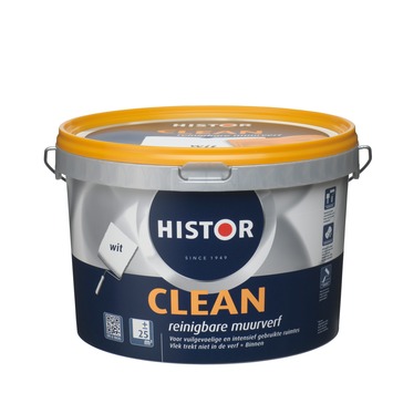 Histor Clean muurverf wit 2,5 liter is een reinigbare muurverf voor vuilgevoelige ruimtes. Hardnekkig vuil is makkelijk te verwijderen met een vochtige schoonmaakdoek, zonder dat uw muur hiervan gaat glimmen. Een ideaal product voor bijvoorbeeld keukens en kinderkamers. De inhoudsmaat van de emmer is 2,5 liter.