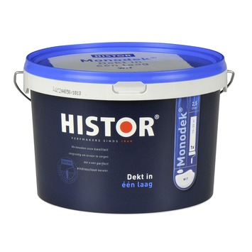 Histor Monodek 2,5l wit is een in één laag dekkende witte matte muurverf voor muren en plafonds binnenshuis. Deze muurverf is van hoge kwaliteit en makkelijk verwerkbaar. Na het aanbrengen van één laag ben je al klaar met je klus. Zo wordt schilderen met Histor Monodek 2,5l wit wel heel makkelijk.
