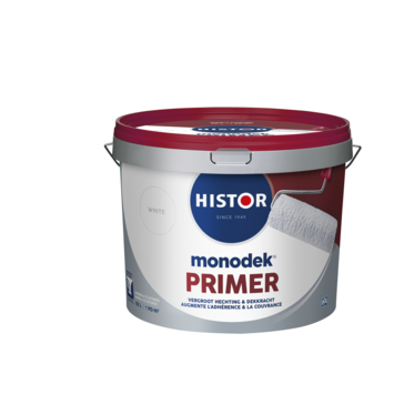 Histor Monodek Primer Is de ideale basis voor jouw muur/plafond die je in een lichte kleur wilt schilderen. Deze dekkende primer met Ultra Dense Technology™ zorgt met een hogere dichtheid voor een optimale dekking van de uiteindelijke verflaag. Met een strak eindresultaat op je muur/plafond.