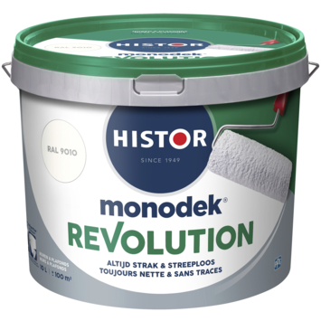 Histor Monodek Revolution RAL9010 10 liter is een revolutie in muurverf. Door de Intelligent Flow Technology™ vloeien de lagen naadloos in het elkaar over. Dit zorgt voor een strak en streeploos resultaat!