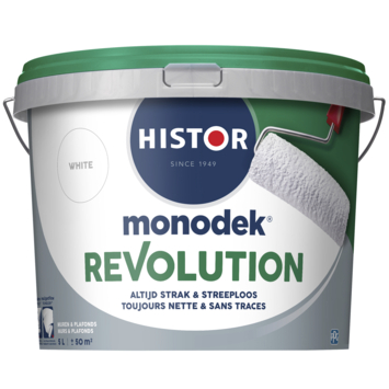Histor Monodek Revolution is een revolutie in muurverf. Door de Intelligent Flow Technology™ vloeien de lagen naadloos in het elkaar over. Dit zorgt voor een strak en streeploos resultaat!