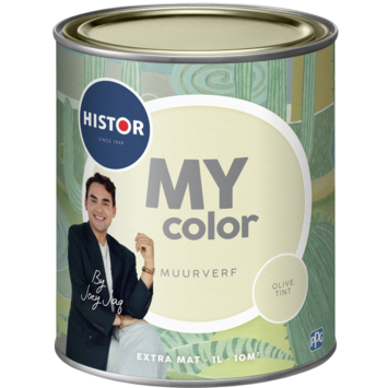 De Histor MY color muurverf extra mat olive tint 1 liter geeft je muren een levendige uitstraling die lang mooi blijft. Olive Tint is door interieur-influencer Joey Jaq geselecteerd als zijn persoonlijke kleur. De kleur past perfect bij zijn leven, zijn herinneringen, zijn verhaal. Deze zachte, lichtgroene kleur is als limited edition verkrijgbaar in een door Joey zelf ontwikkeld blik.