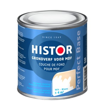Histor Perfect Base grondverf MDF wit 250 ml hecht en dekt goed en is speciaal geschikt voor een mdf en hdf ondergrond. De verf is watergedragen en in verschillende inhoudsmaten verkrijgbaar. De inhoudsmaat is 250 ml.