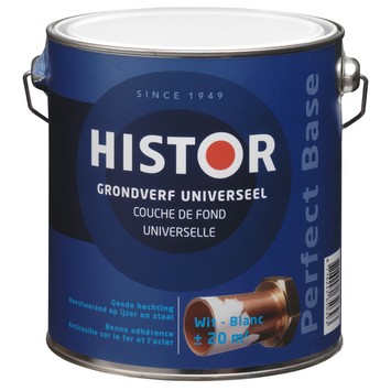 Deze universele grondverf is geschikt voor bijna iedere ondergrond. Histor Perfect Base Universeel grondverf wit 2,5 liter is een goed hechtende en roestwerende ondergrond. Met een droogtijd van een half uur en overschilderbaar na 4 uur is deze terpetinegedragen grondverf zeer geschikt voor snellere klussen. Met de inhoud van dit blik kan je ongeveer 25 m² gronden. Te gebruiken voor binnen en buiten. Doordat de verf mooi navloeit en goed schuurbaar is, zorgt dit voor een ideale basis voor een goed en degelijk schilderwerk.