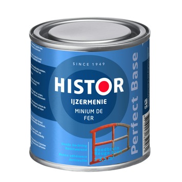 Histor Perfect Base ijzermenie roodbruin 250 ml biedt goede bescherming van nieuw of onbehandeld metaal. De verf is roestwerend en kan binnen én buiten gebruikt worden. Omdat de verf ook voor een goede hechting zorgt kan deze prima als voorbehandeling gebruikt worden. De inhoudsmaat is 250 ml.