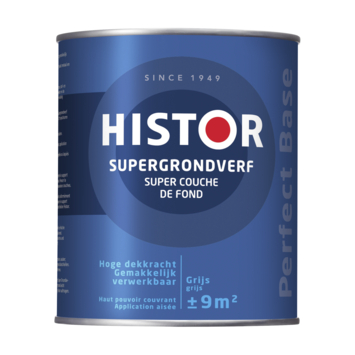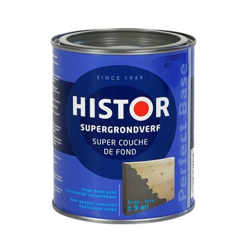 Histor Perfect Base Super grondverf grijs 750 ml is de beste basis voor een goede eindlaag. De grondverf is vochtregulerend en daarom geschikt voor binnen en buiten. Voor het ideale resultaat brengt u de grondlaag aan in de kleur van de eindlaag, of één tint lichter. De inhoudsmaat is 750 ml.